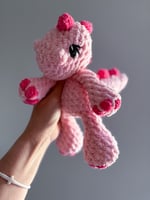 Made to order! Completely color customizable, even individual spikes and toes! Size is appx 12”. Embroidered eyes make this toy safe for all ages. Pattern by mamamademinis