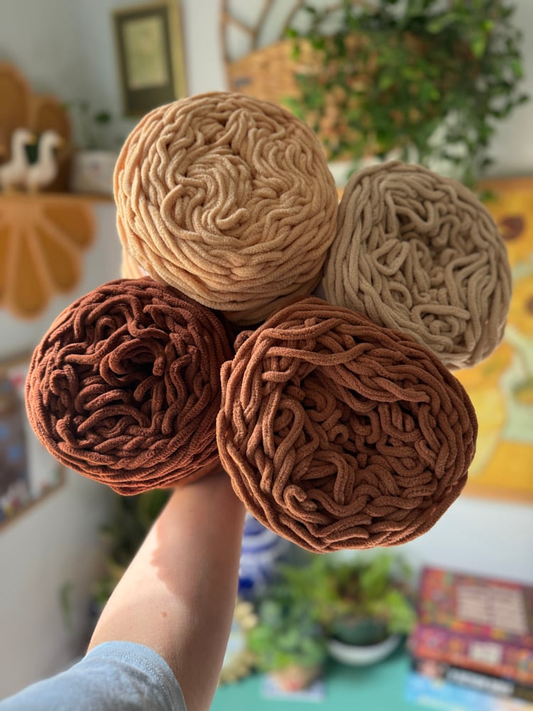 160g/90m. 100% polyester size 6 blanket yarn. Crochet hook size 5-6.5mm recommended. BSCI, SGS, BV and OEKO-TEX 100 certifications.