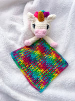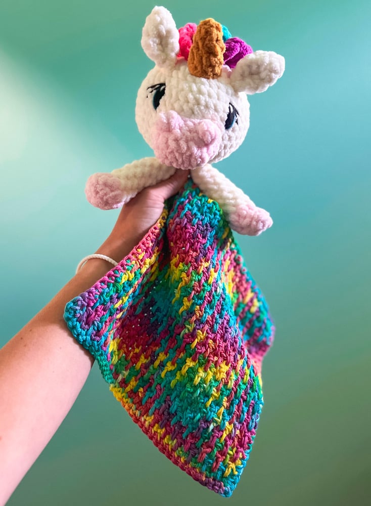 blanket is made of 100% cotton. Embroidered eyes make this product safe for all ages. Blanket measures appx.